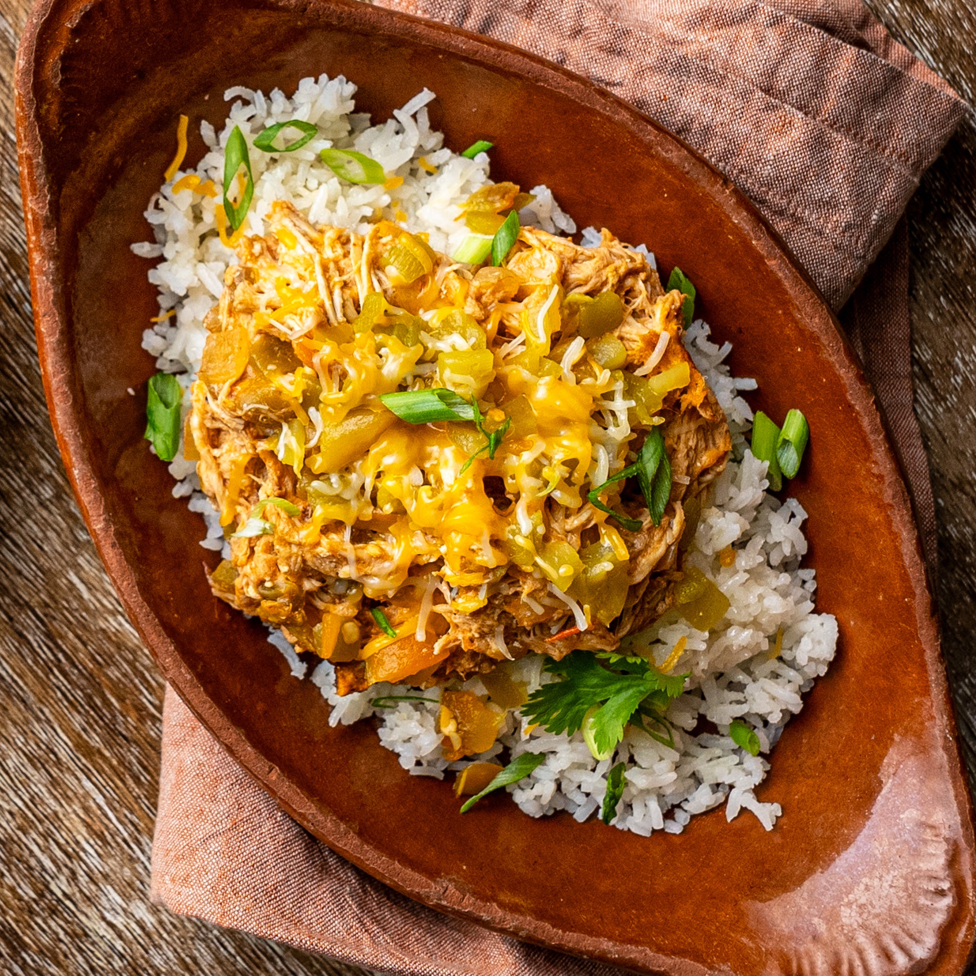 Treat yourself to our Chicken Enchilada Casserole, featuring tender, shredded all-natural white meat chicken, perfectly blended with red enchilada sauce, green chiles, and sautéed onions.