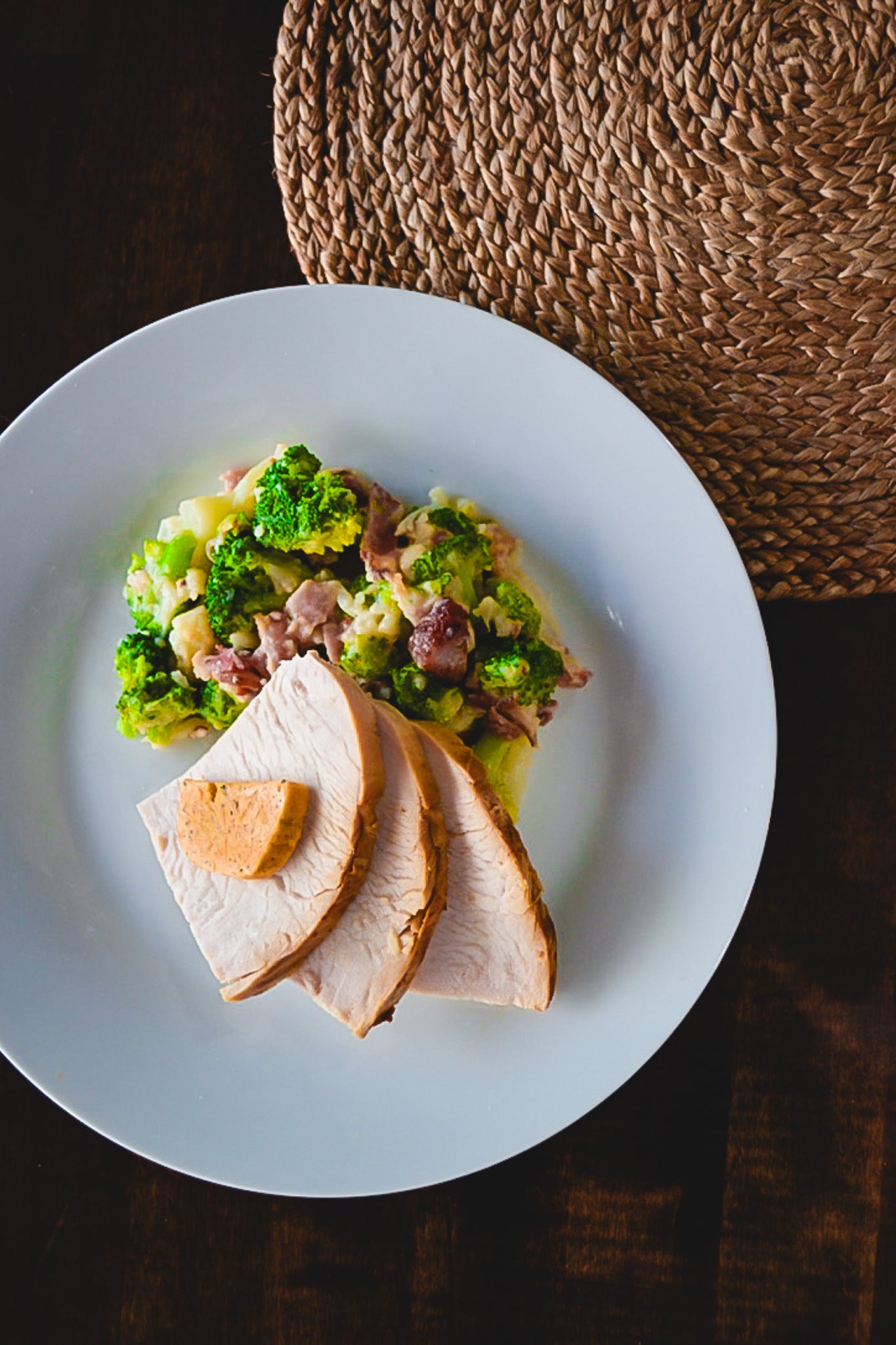 I was looking forward to this dish, but it was disappointing. My turkey was dry. The Cajun butter did not have enough flavor to season the meat. I am not a fan of adding bacon to vegetables, so I wasn't happy with the side either. I would have preferred seasoned meatless vegetables, and perhaps adding a scoop of mashed potatoes.